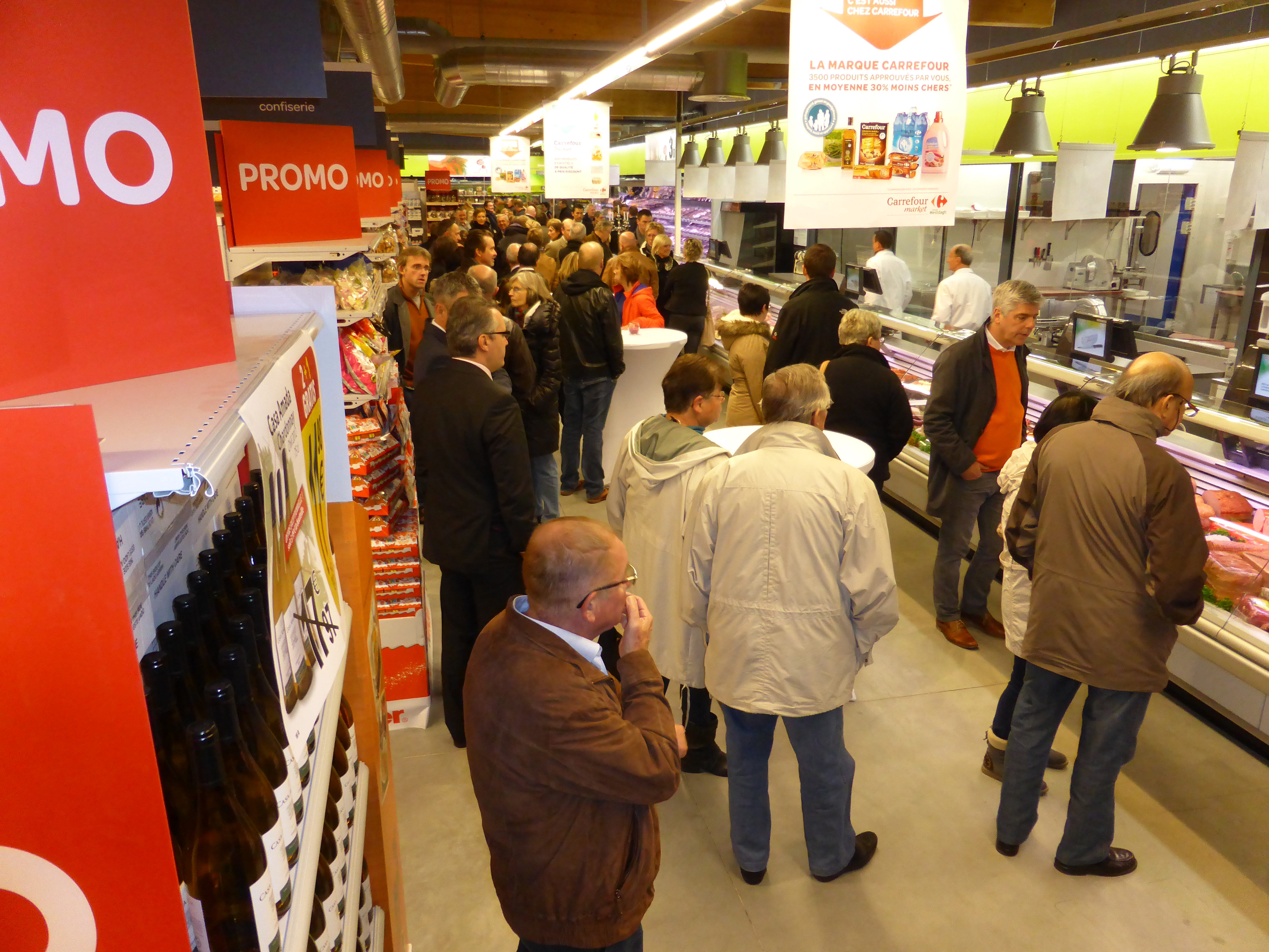 Le supermarché sera de nouveau ouvert le 20 novembre 2013 mais ce soir, mardi 19, elle accueillait ses clients, son personnel et leur familles et les personnalités de la commune pour une ouverture officielle. Le moment donc de découvrir le nouveau bâtiment élargi, avec un intérieur agréable. Ou peut-être aussi le moment de découvrir comment les produits sont distribués dans le magasin pour que la prochaine visite se passe plus vite. Aucun souci si vous ne retrouvez pas tout de suite: les différents rayons sont bien indiqués et sinon le personnel vous aidera avec le sourire (comme d’habitude!).