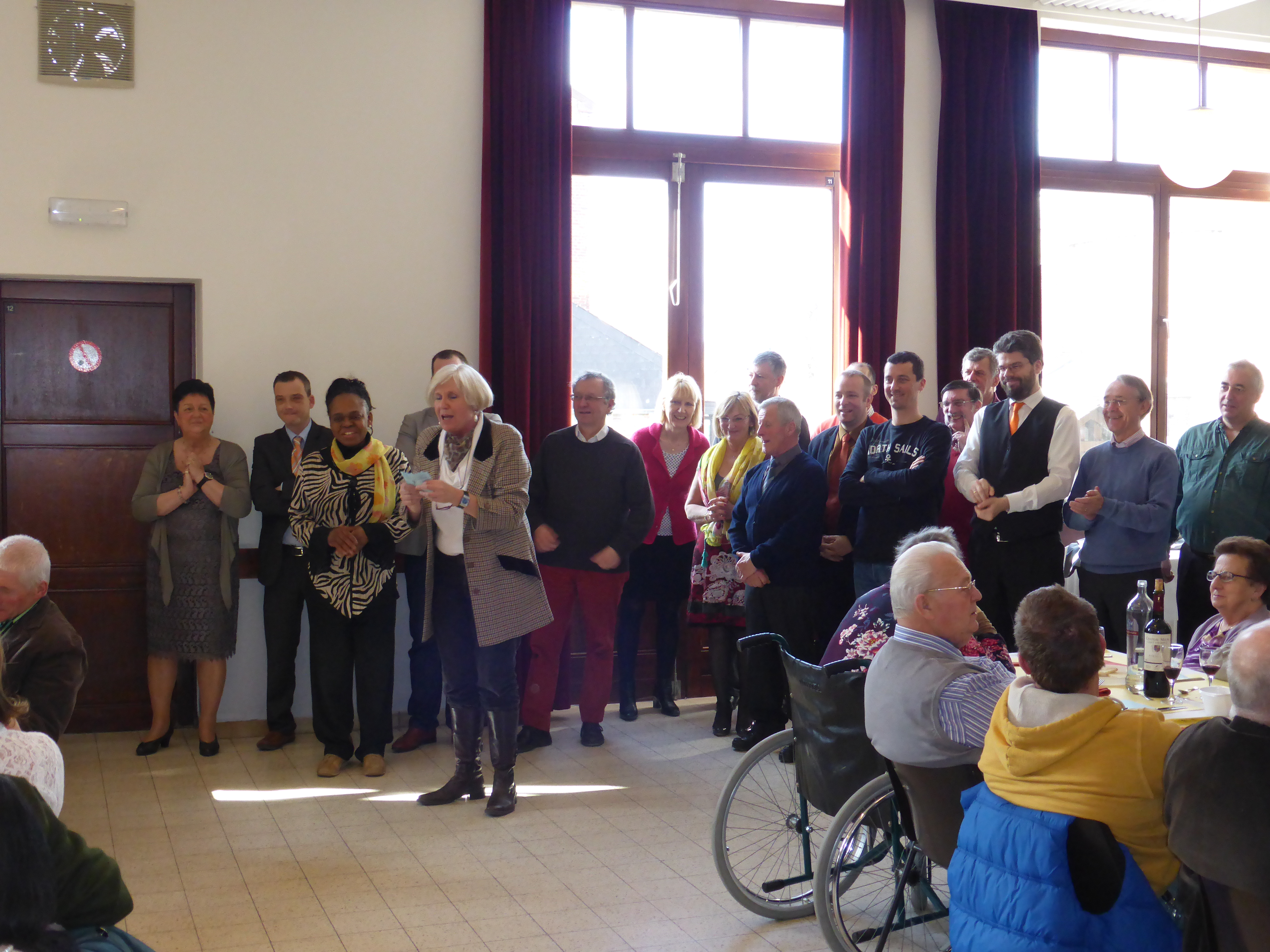 Nous profitons de ce moment pour remercier notre conseillère communale Marie-José Frix. Elle est la cheville ouvrière du comité local (elle s’occupe notamment de l’organisation du repas). C’est grâce à elle que, début février, nous avons pu recevoir à Beauvechain Herman Van Rompuy, président de l’Europe, pour une intéressante conférence. La salle l’a donc fortement applaudie.