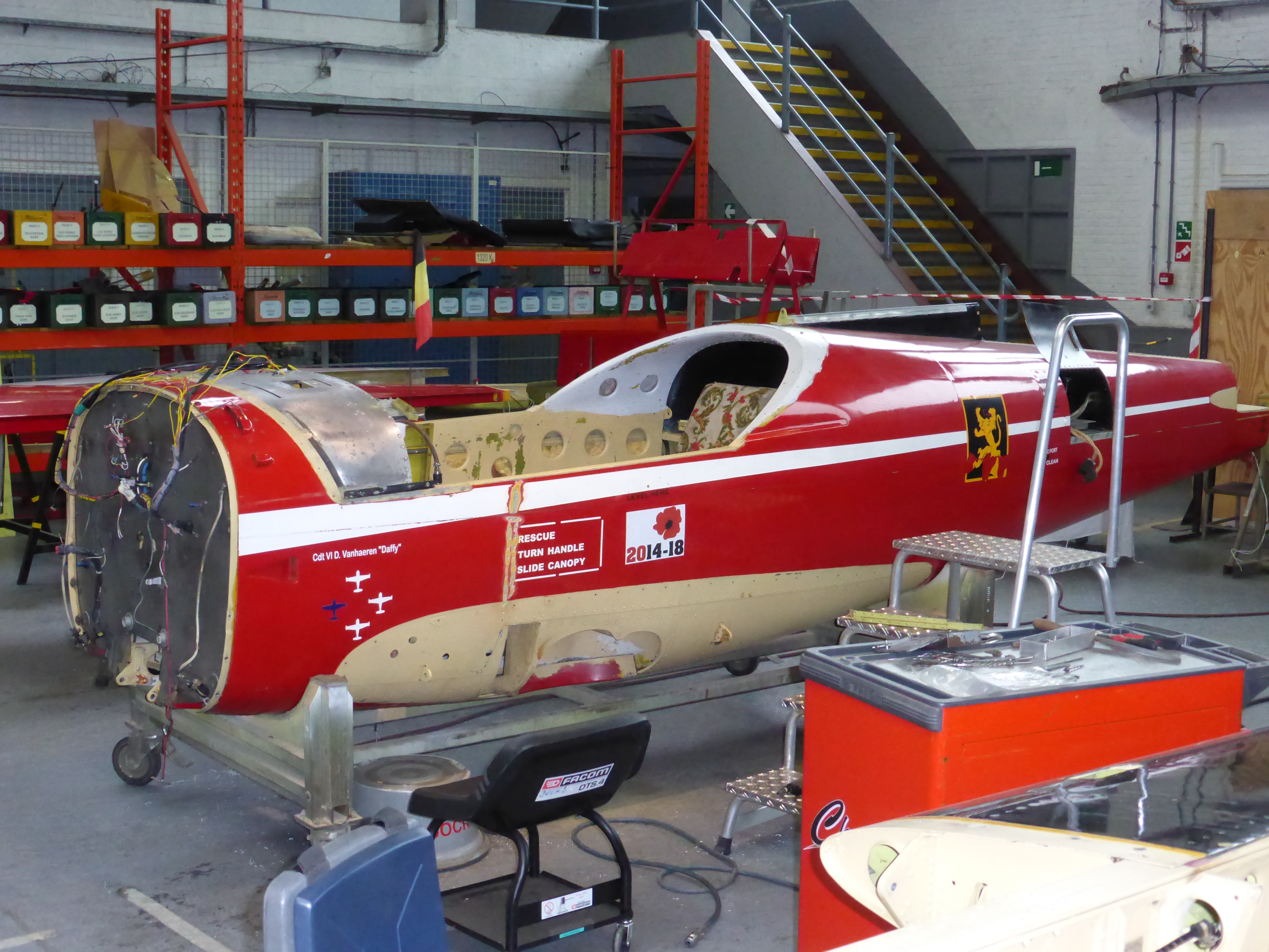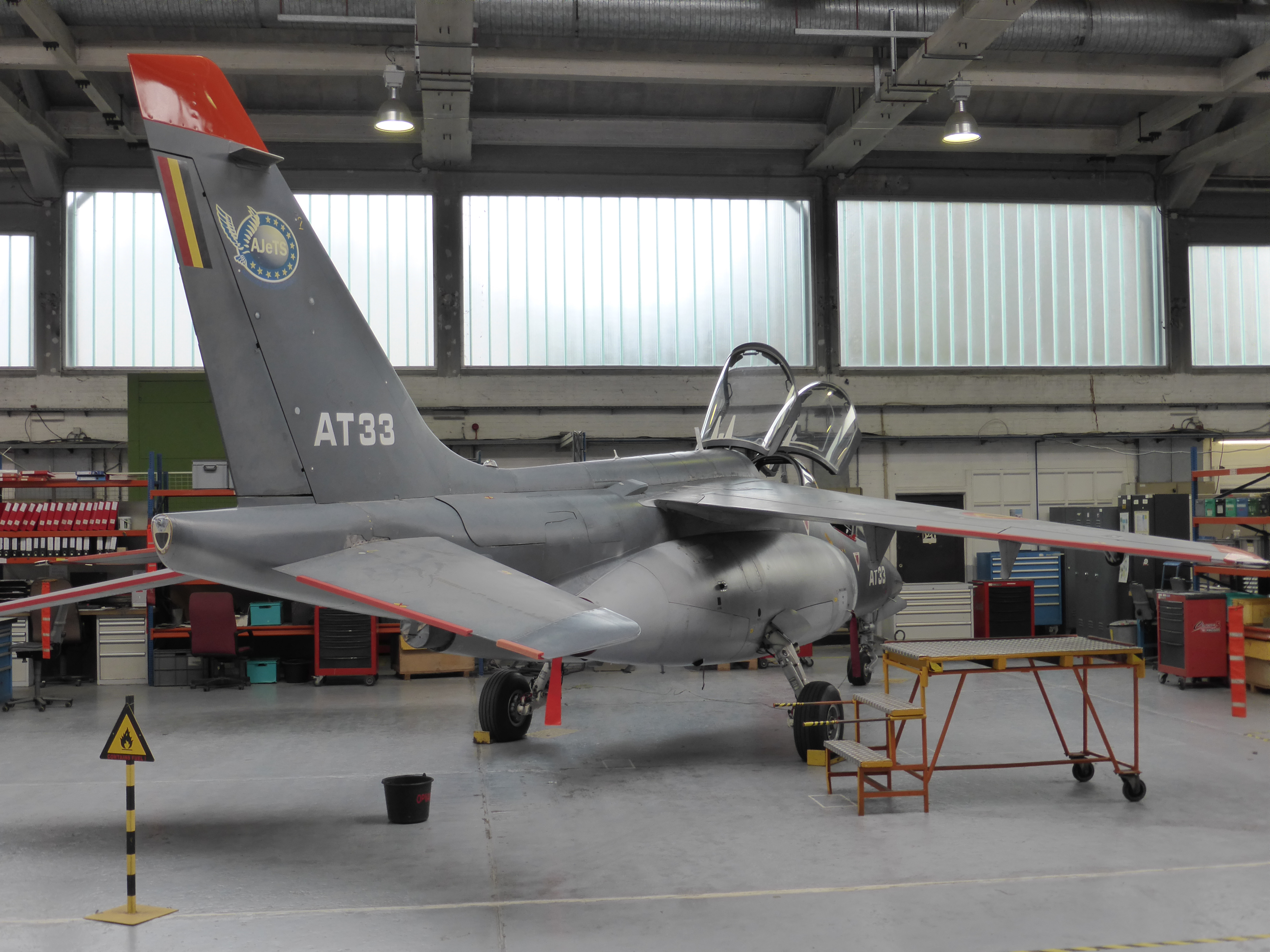 Dans le hangar d’entretien des Marchetti on révise aussi les Alpha Jet, des avions à réaction qui sont basés normalement en France pour former nos pilotes. Nous avons eu de la chance il y en avait deux, un au « complet » et un deuxième complètement démonté. Quel plaisir donc (une fois de plus) pour nous, fans d’aviation militaire. Ce qui m’a frappé c’est que cet Alpha Jet n’est pas grand du tout et a surtout des ailes minuscules (dans ma perception peut-être ?). Peu importe, ça reste un appareil intéressant et surtout utile pour nos pilotes.