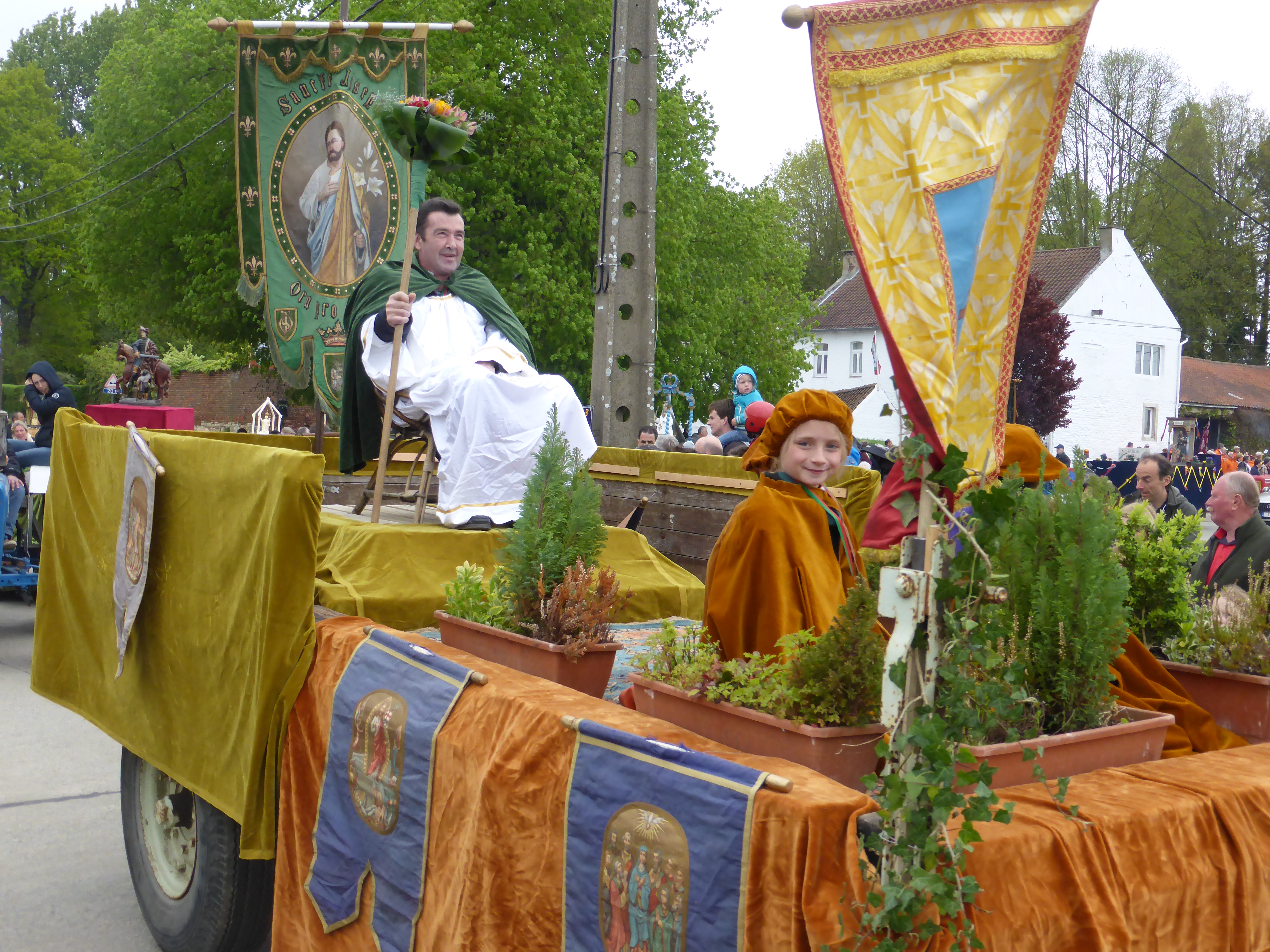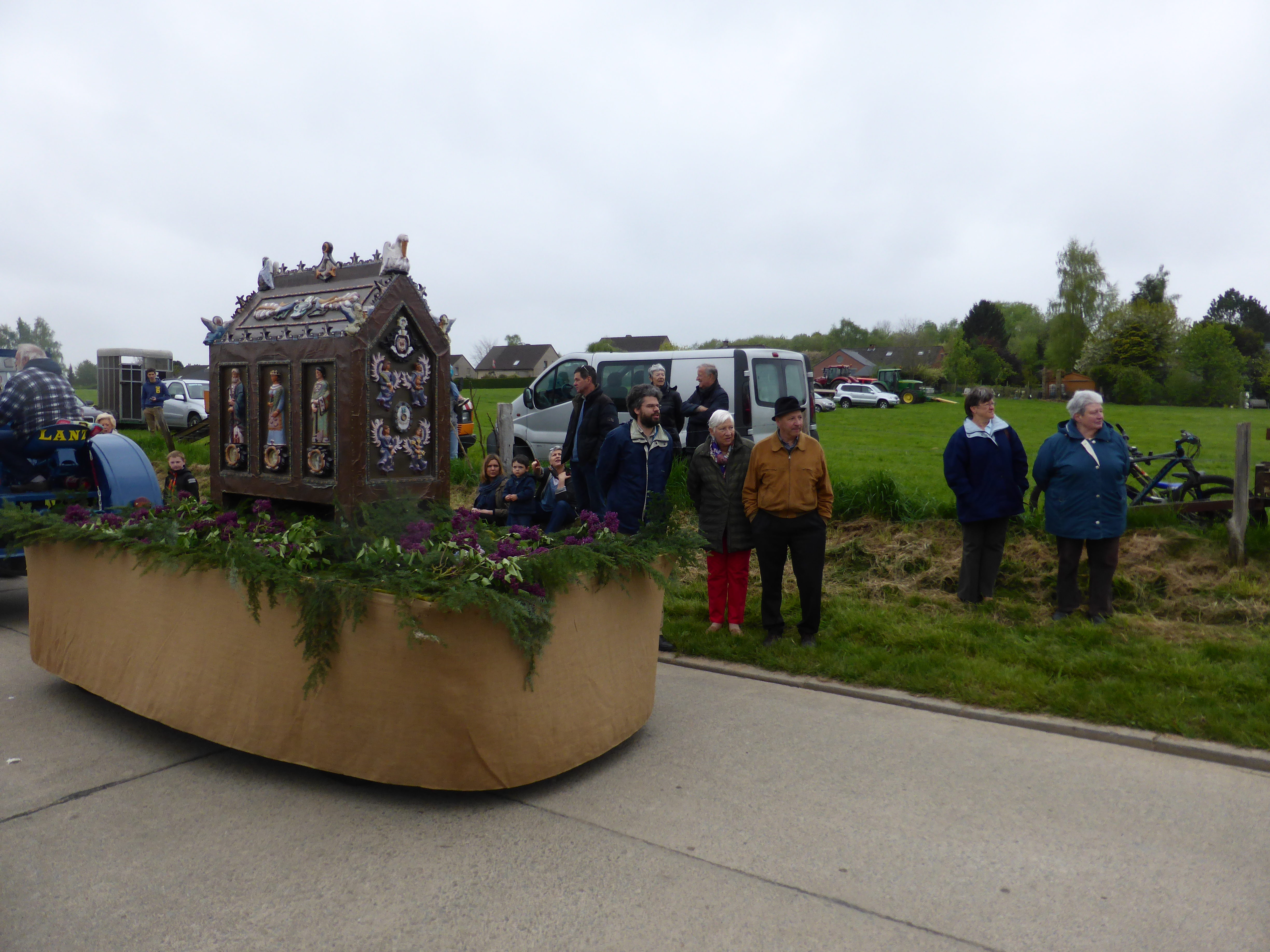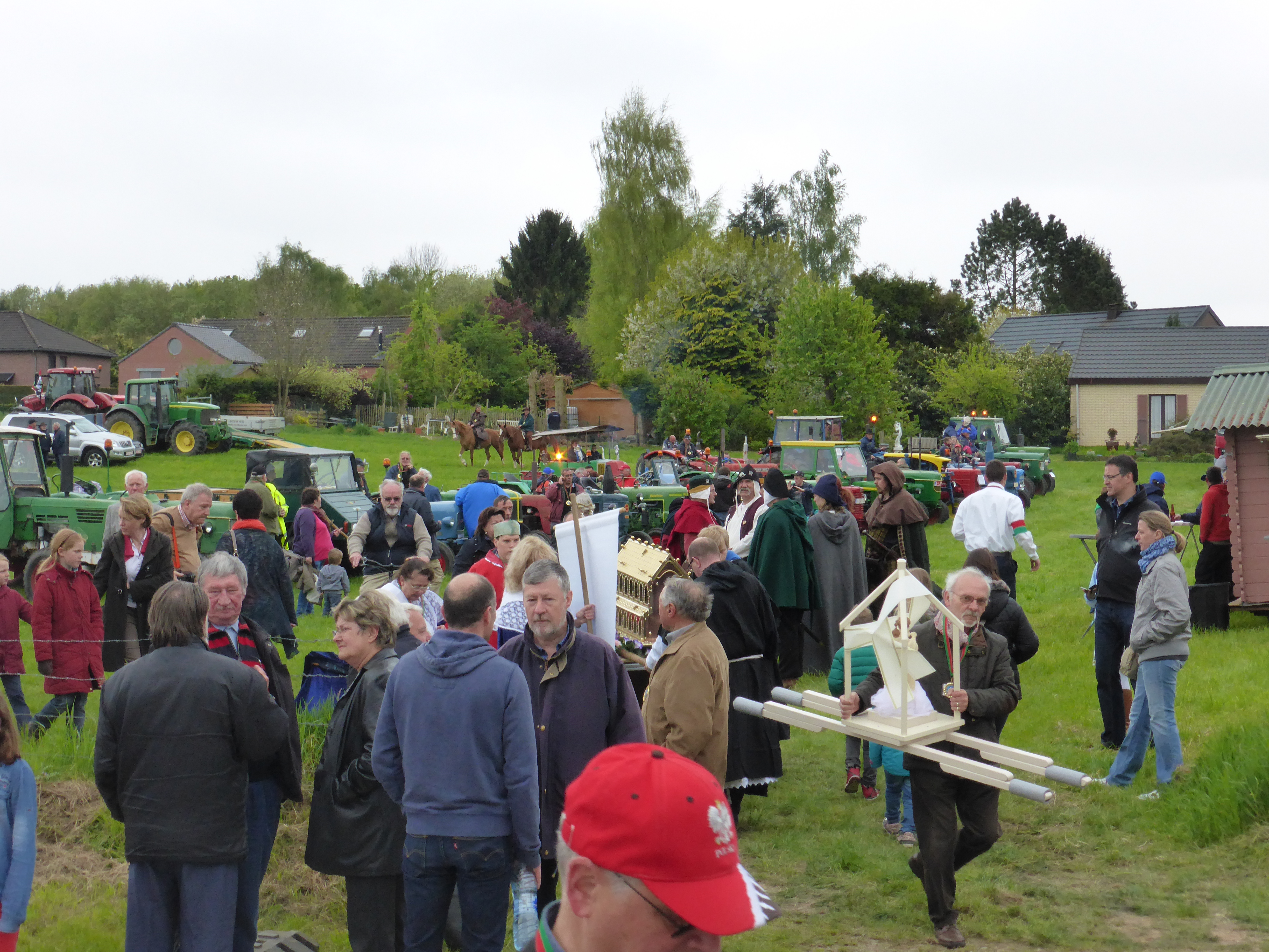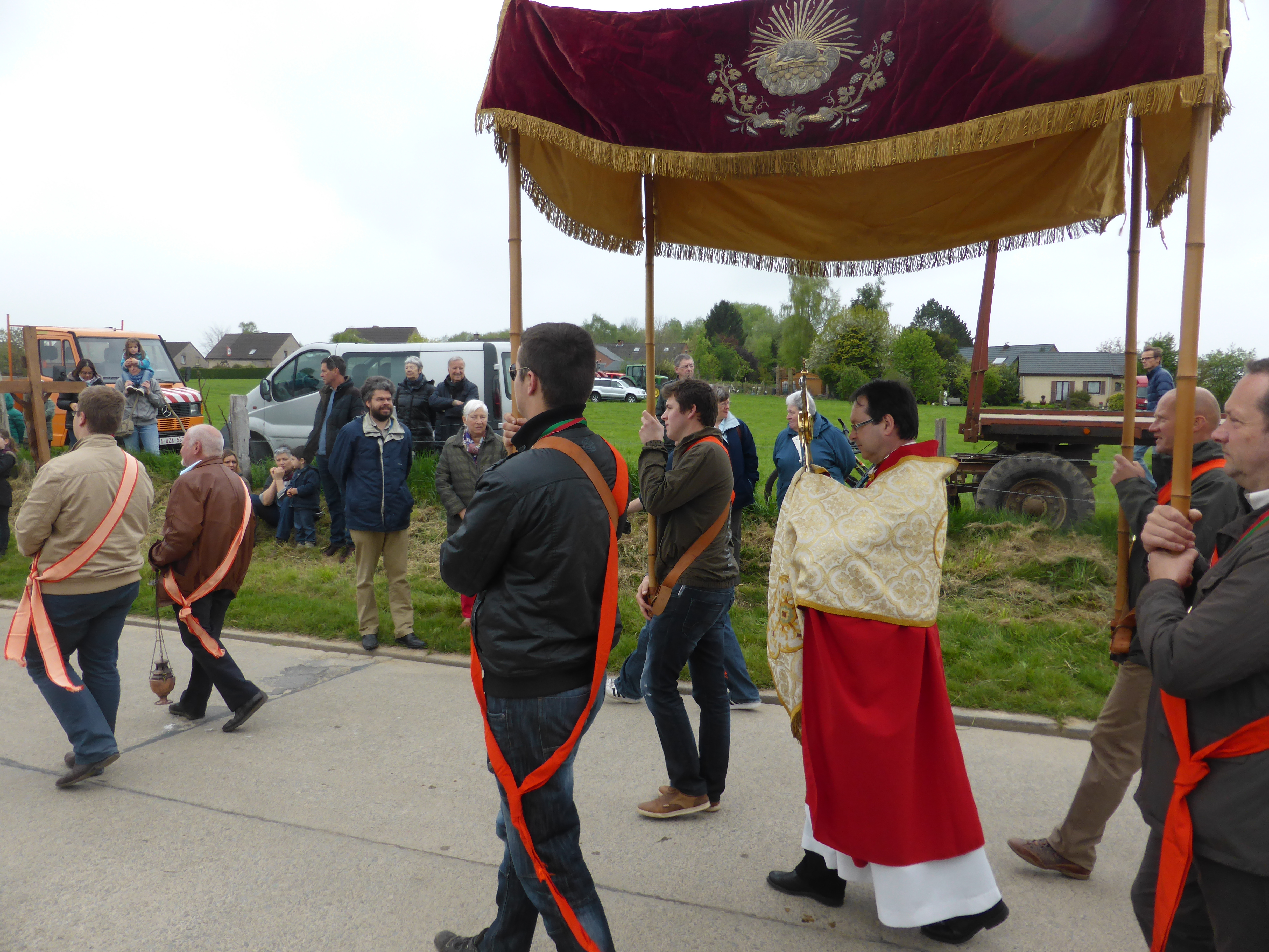 Ce 3 mai 2015, la Procession St Corneille est sortie comme elle le fait depuis de nombreuses années. Cette année est une année spéciale : le 555e anniversaire de la chapelle qui porte le même nom à Mille. Le temps était nuageux, mais chance (quasi) aucune goutte n’est tombée pendant la procession (ouf!). Pour vous donner une idée de cette merveilleuse tradition, voici quelques photos. Les dernières préparations avant la procession. Début de la procession avec les tracteurs.