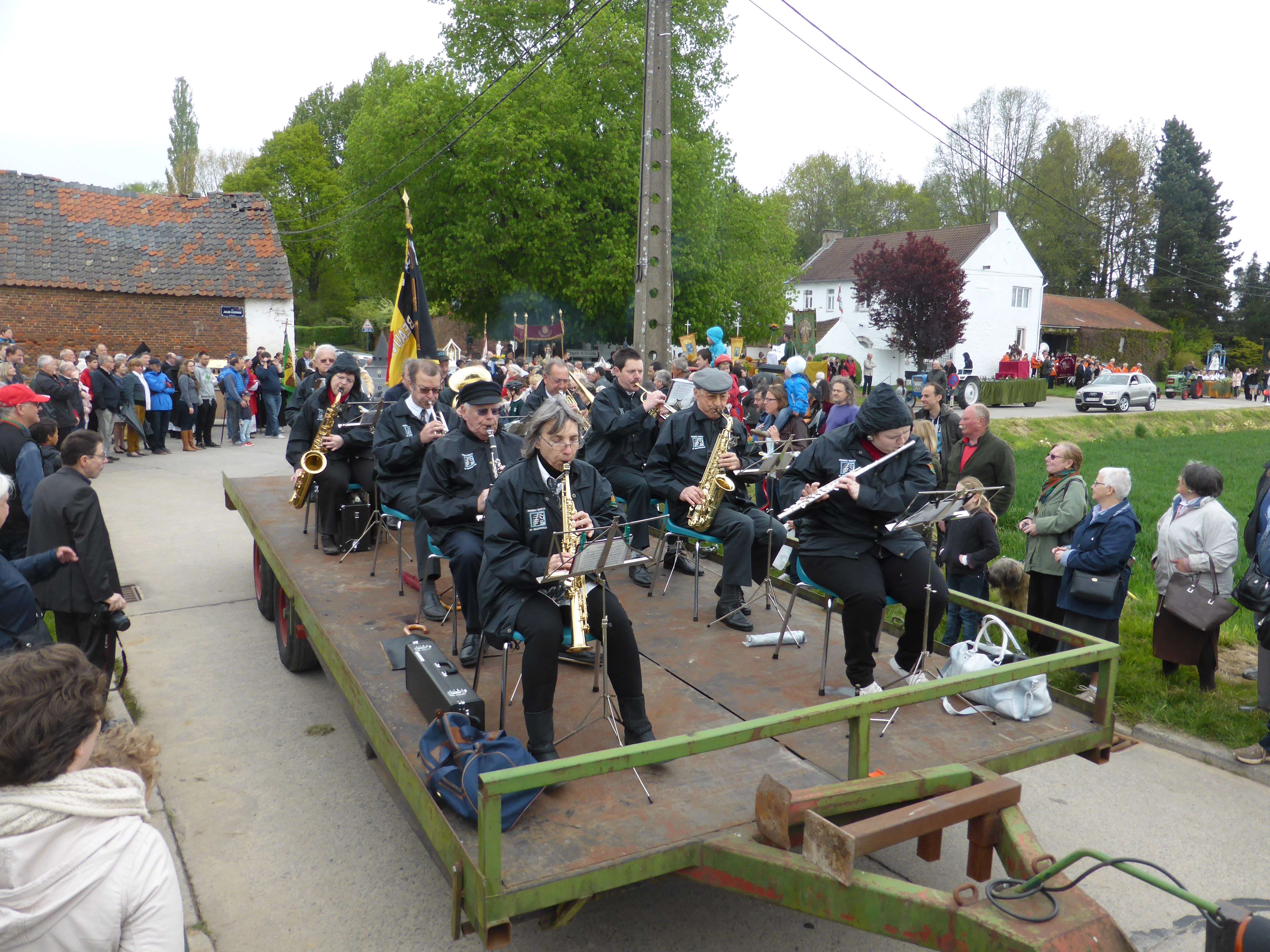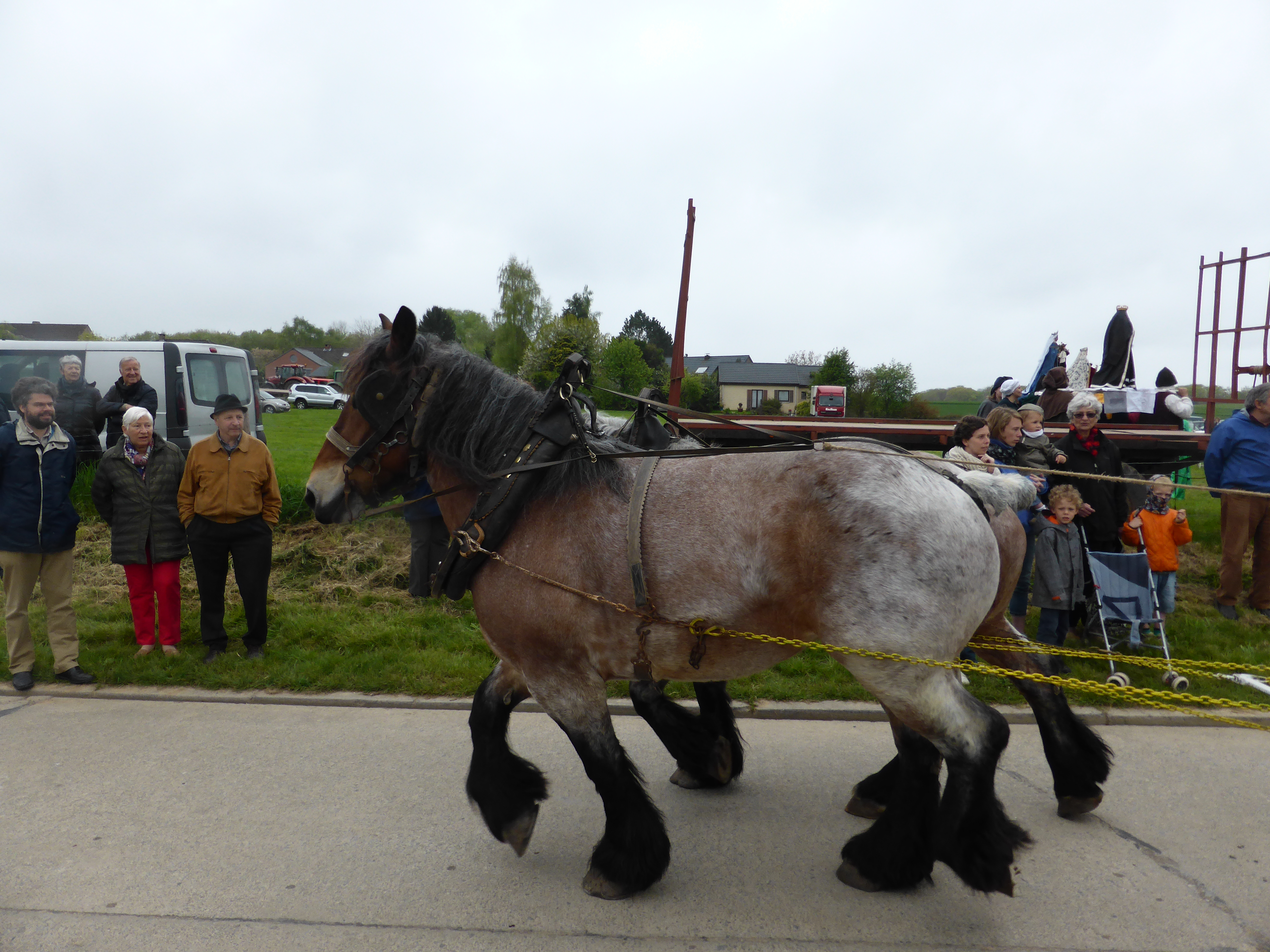 Trois fanfares présent, dont notamment ici l’Ensemble Musical de Beauvechain. Un des chars. Tous magnifiquement décorés. Le trait belge, un des plus belles races de cheval.