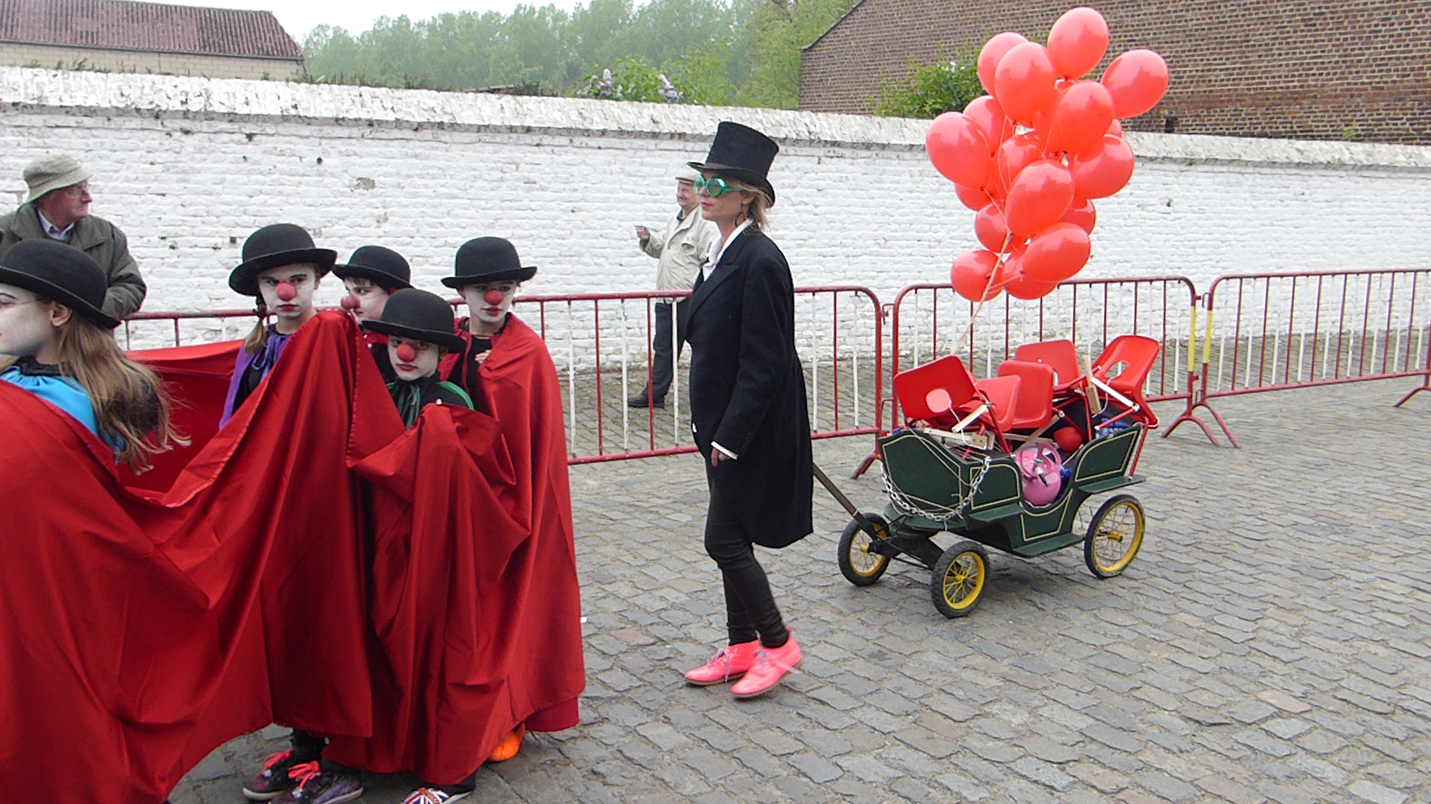 L’école de Clown « Et Qui Libre » suivait avec un chœur de brigands-clowns très élégants.