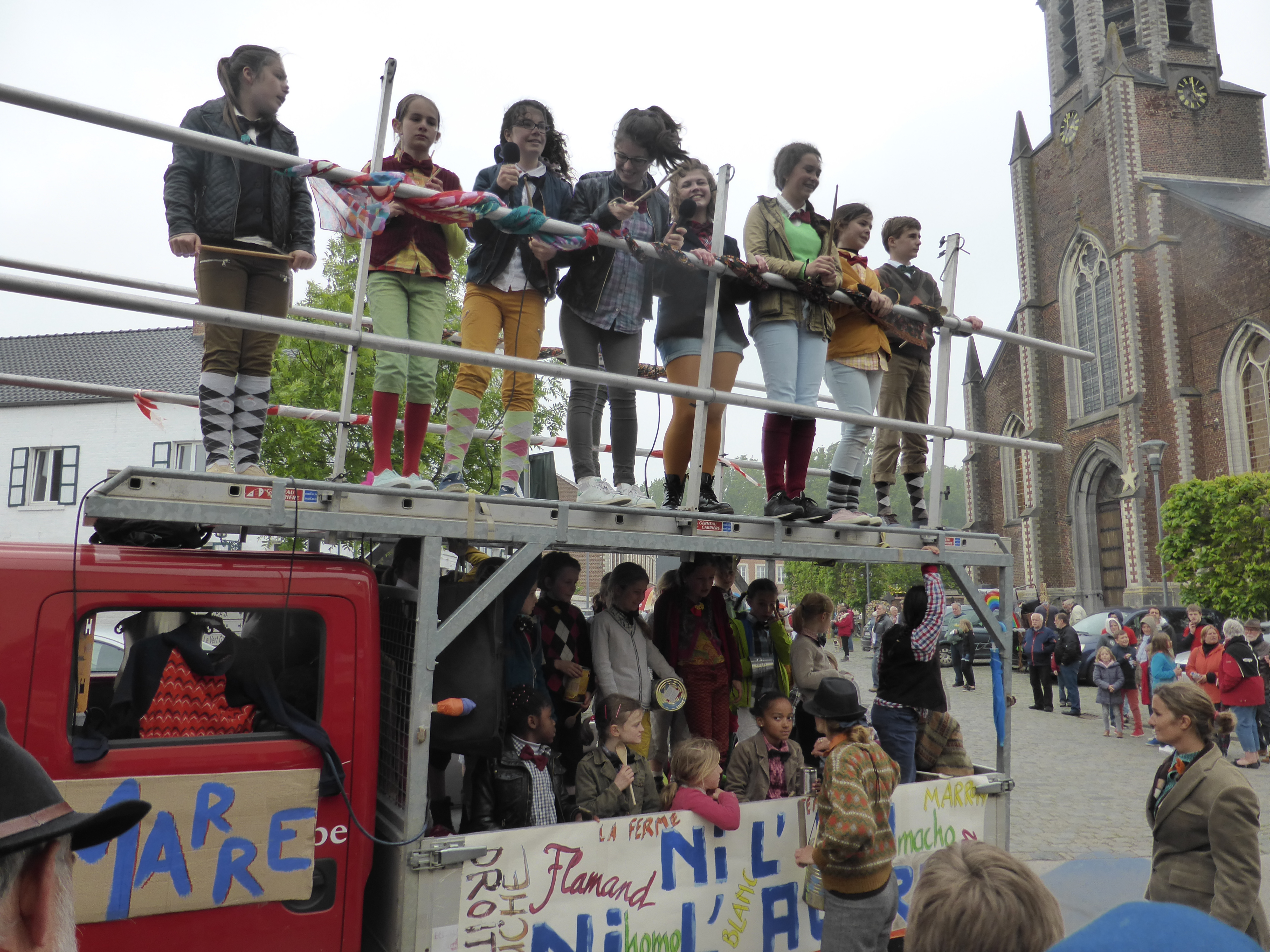 La chorale Chantourinnes circulait en camionnette (aménagée en deux étages), rebaptisée pour l’occasion « véhicule 100 % Stromae » où les enfants s’en donnaient à cœur joie dans un medley d’un de nos meilleurs artistes belges du moment.