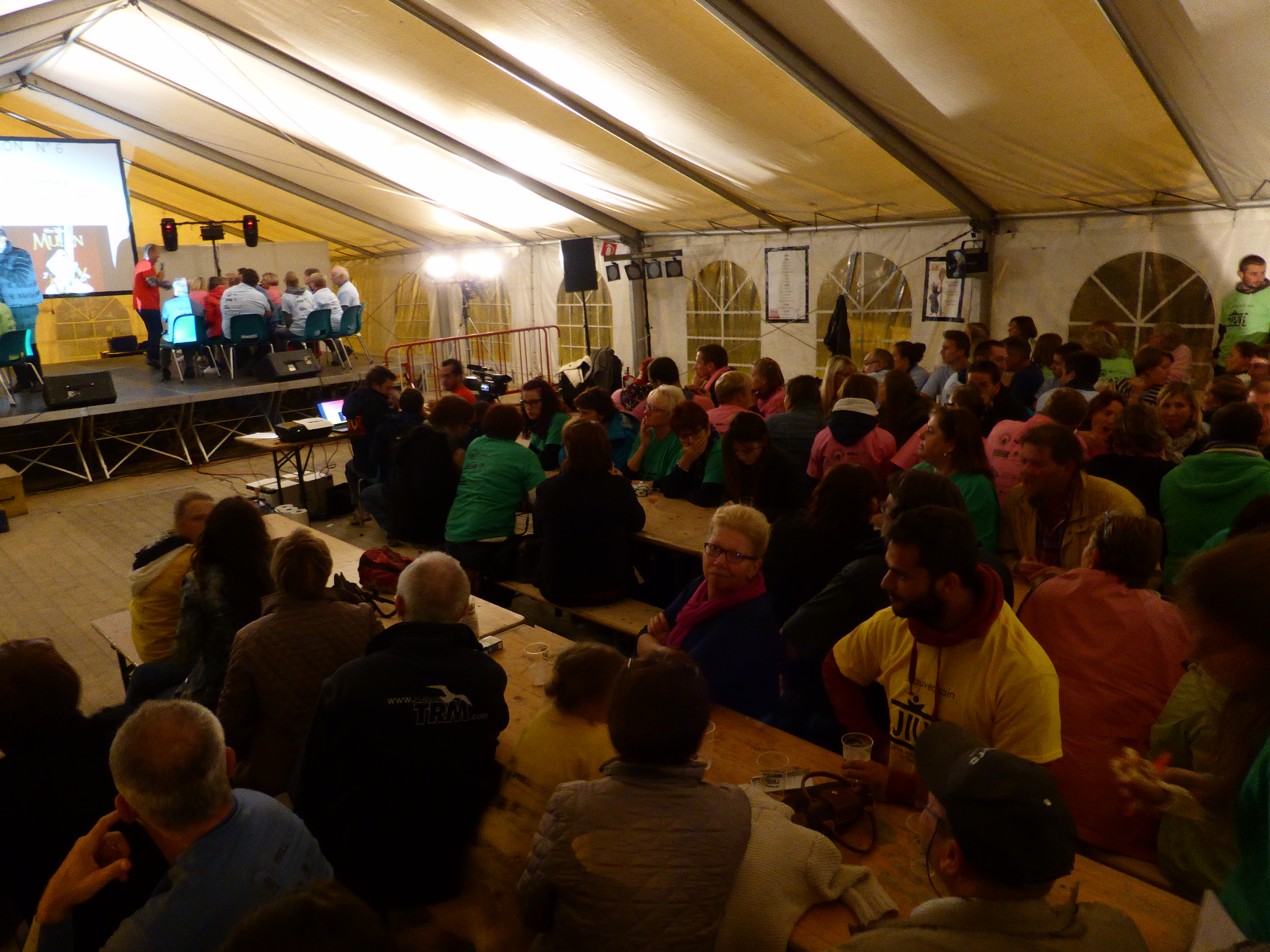 Comme les autres années, le vendredi soir on a proposé aux différents villages un quiz. Au menu : des questions photos, culturelles et musicales avec comme thèmes « Notre commune » et des « Jeux Disney ». L’année dernière j’avais écrit sur ce même blog que les questions étaient heureusement faciles, donc pas de chance … cette année elles étaient plus difficiles… mince (j’aurai dû me taire !). Beauvechain remporte le quiz, victoire méritée et reçoit le trophée « Thierry Bertrand », en l’honneur de l’historien beauvechainois qui nous a quittés beaucoup trop tôt. Merci aussi à Patrick et Benjamin pour l’animation de ce quiz.