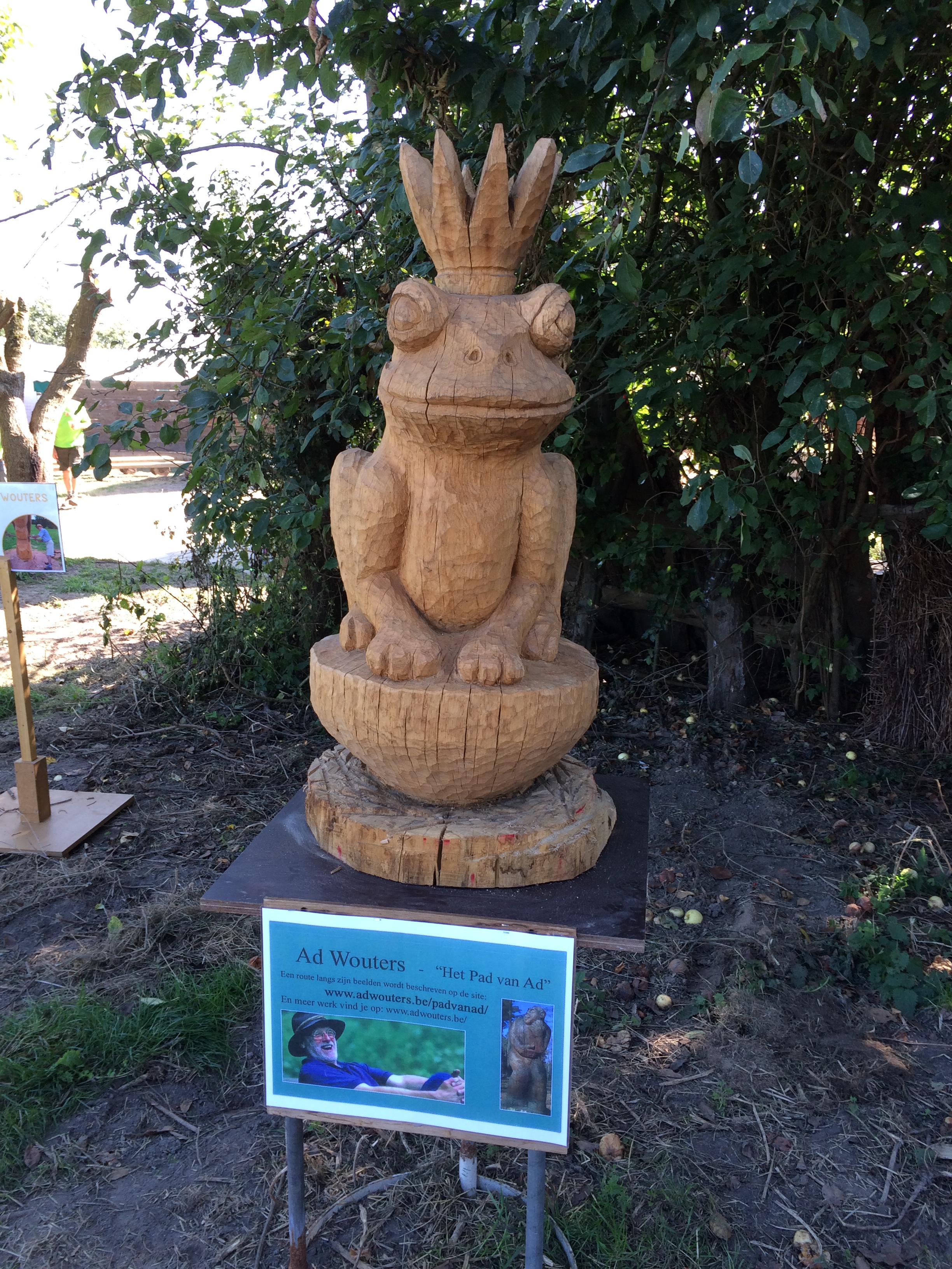L’exposition de quelques artistes complétait l’affiche, notamment la présence d’Ad Wouters, sculpteur du bois, qui a créé l’oiseau très remarquable et reconnaissable à l’entrée de la forêt à Blanden (temporairement absent à cause des travaux). C’est un homme qui, dans un bloc de bois, voit tout de suite une pièce d’art… Il suffit « simplement » de la réaliser (quel artiste !). A noter qu’il a sa propre promenade (lien en néerlandais) dans la forêt de Meerdael pour découvrir ses autres œuvres.