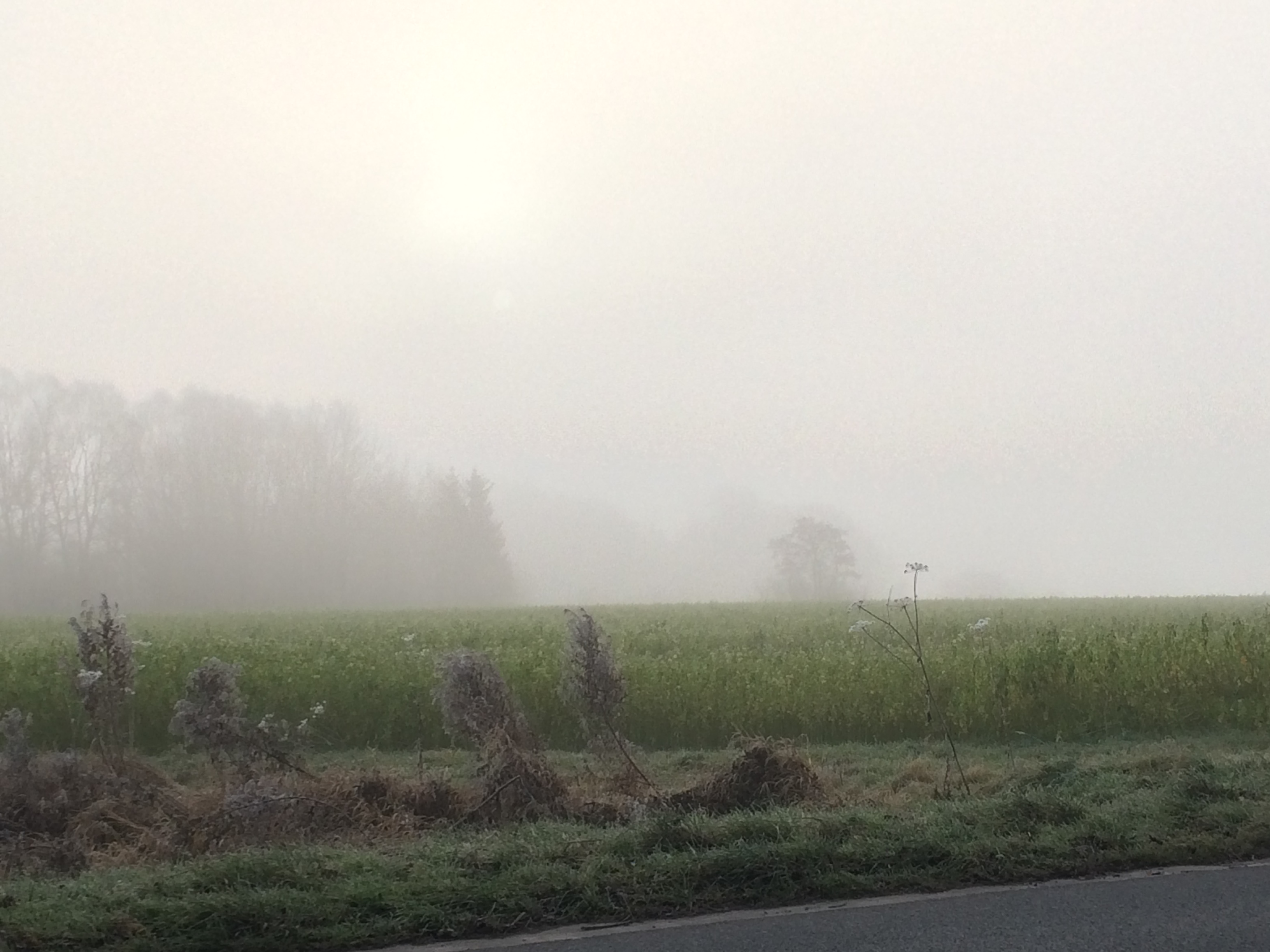 … entre Tourinnes et Hamme-Mille, on voit le soleil qui essaie de percer ce brouillard hivernal. En vain pour l’instant …