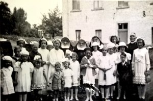 Il ne restait donc que de donner un nom à cette école. Je ne retrouve aucune trace explicite de la raison pour laquelle elle fut appelée « Caritas », mais je présume que c’était un coup de génie de la part de l’abbé. Ainsi le nom rappellerait la sœur qui s’était dévouée depuis plus d’un quart de siècle à Hamme-Mille et y avait une bonne réputation. Elle y habitera d’ailleurs aussi comme supérieure de la petite congrégation jusqu’à sa mort en 1942. Là aussi, je présume que le curé a tout fait pour qu’elle reste à Hamme-Mille (même en mauvaise santé) car sa présence donnait un argument fort pour attirer des élèves.
