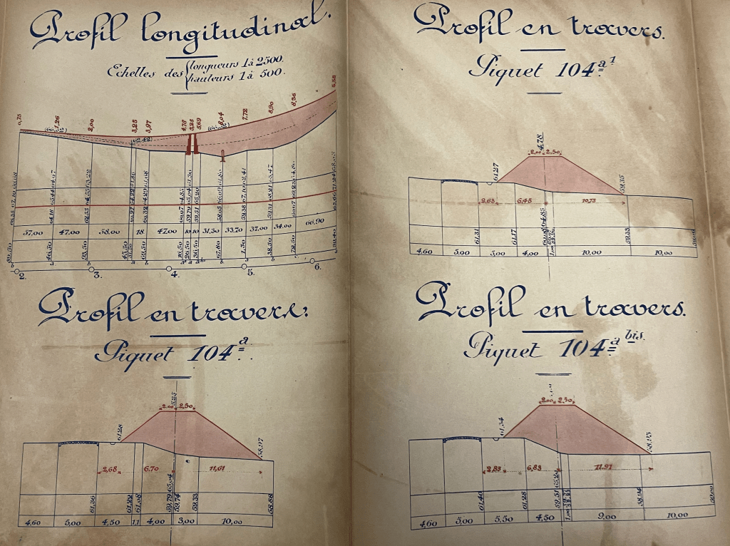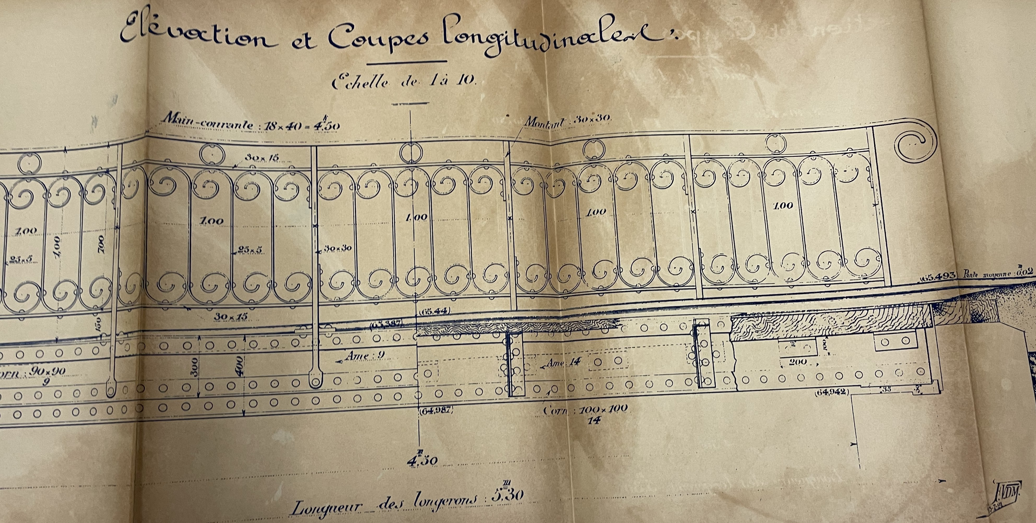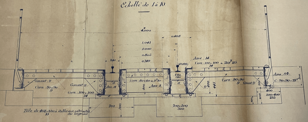 Je vous propose également quelques autres vues de ces plans détaillés, comprenant plusieurs coupes et spécifications du petit pont en fer. On ne se pressait pas dans la réalisation… la construction du tram était une affaire sérieuse.