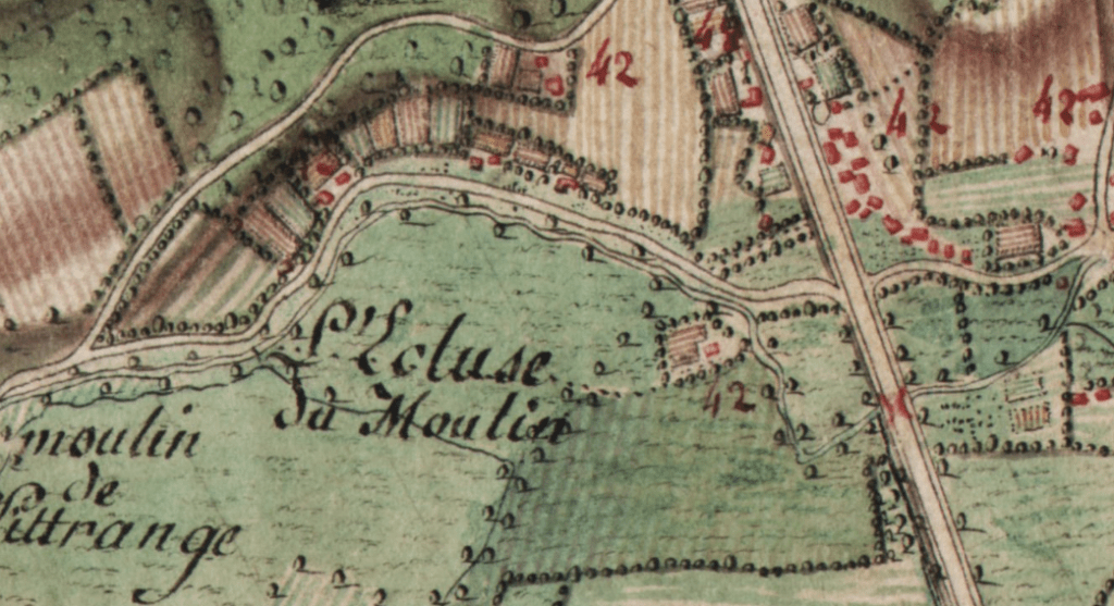 Situation sur la carte Ferraris (1770). La chaussée y était déjà