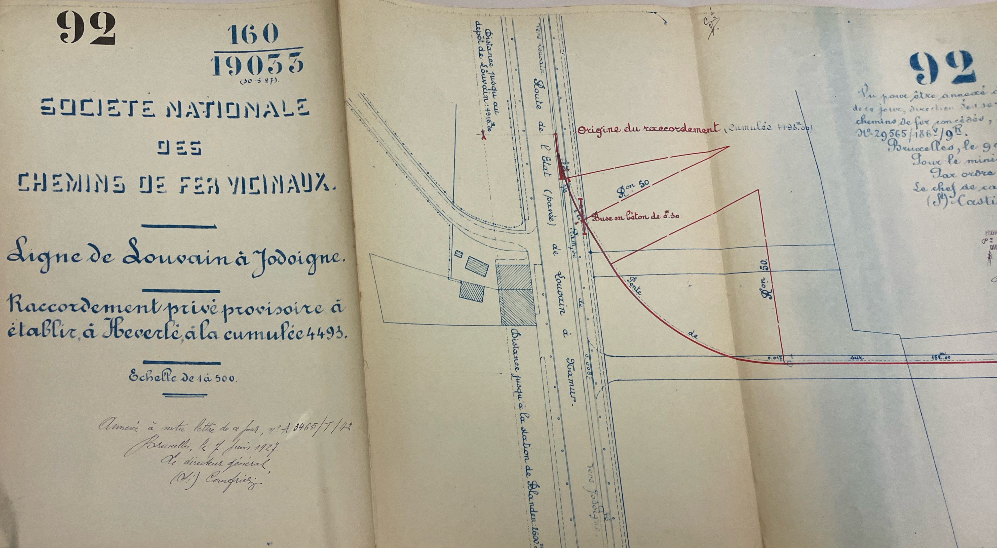 C’est en 1927 qu’ils envisagent la construction ici. La SNCV était clairement la solution la plus économique pour transporter une telle quantité de matériaux de construction, venant de Leuven (vu comment l’aiguillage est monté). C’est un bel exemple de l’utilité du tram, non seulement pour les passagers mais surtout pour le transport de marchandises.