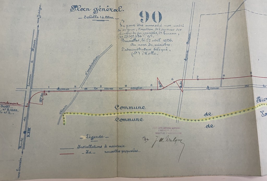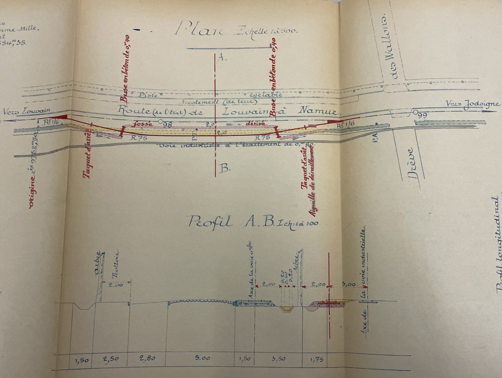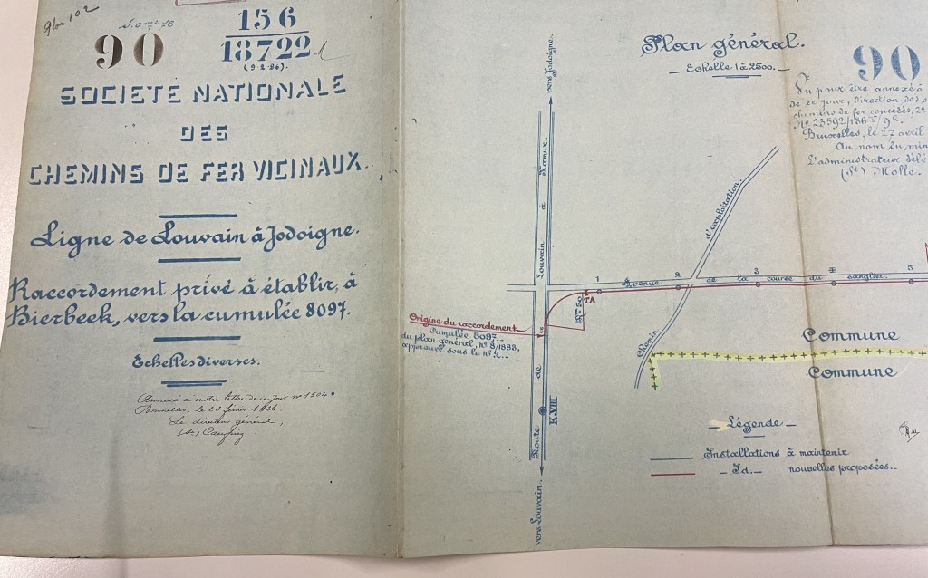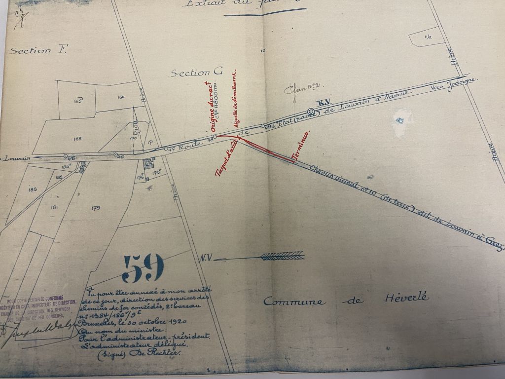 Nous poursuivons nos recherches fascinantes dans les archives à la recherche de connexions privées utilisées pour le transport de marchandises. Voici un bel exemple : en 1920, un petit embranchement fut ajouté à Heverlee, dans le bois de Héverlee, sur la chaussée de Namur .
