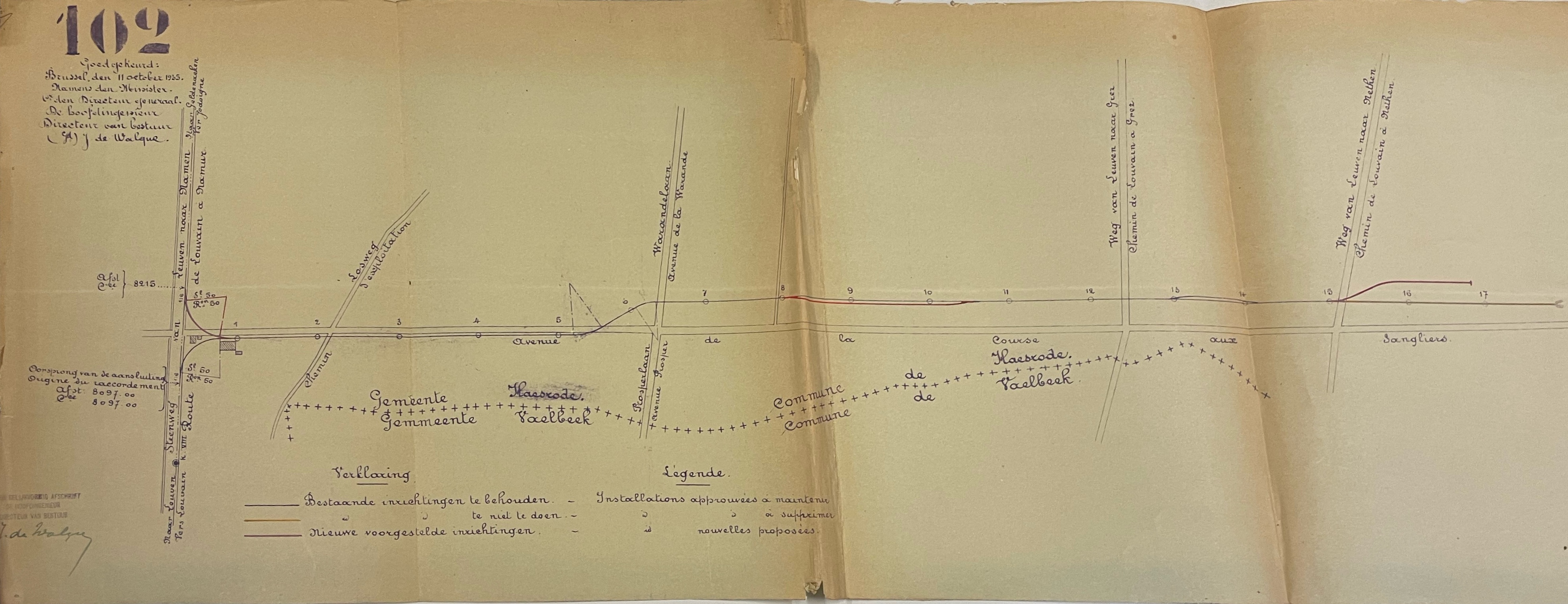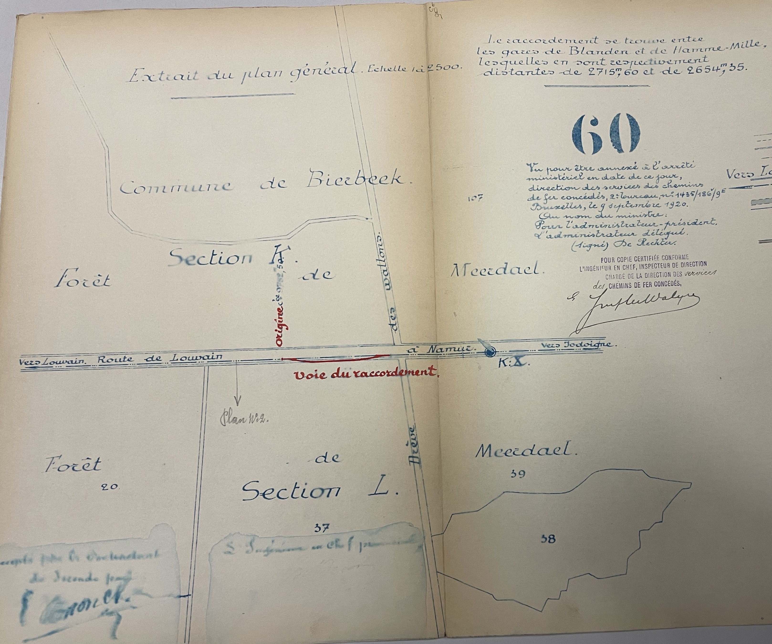 Nous poursuivons nos recherches fascinantes dans les archives à la recherche de connexions privées utilisées pour le transport de marchandises. Voici un bel exemple : en 1920, un petit embranchement fut ajouté à Heverlee, dans le bois de Héverlee, sur la chaussée de Namur .