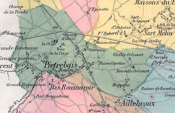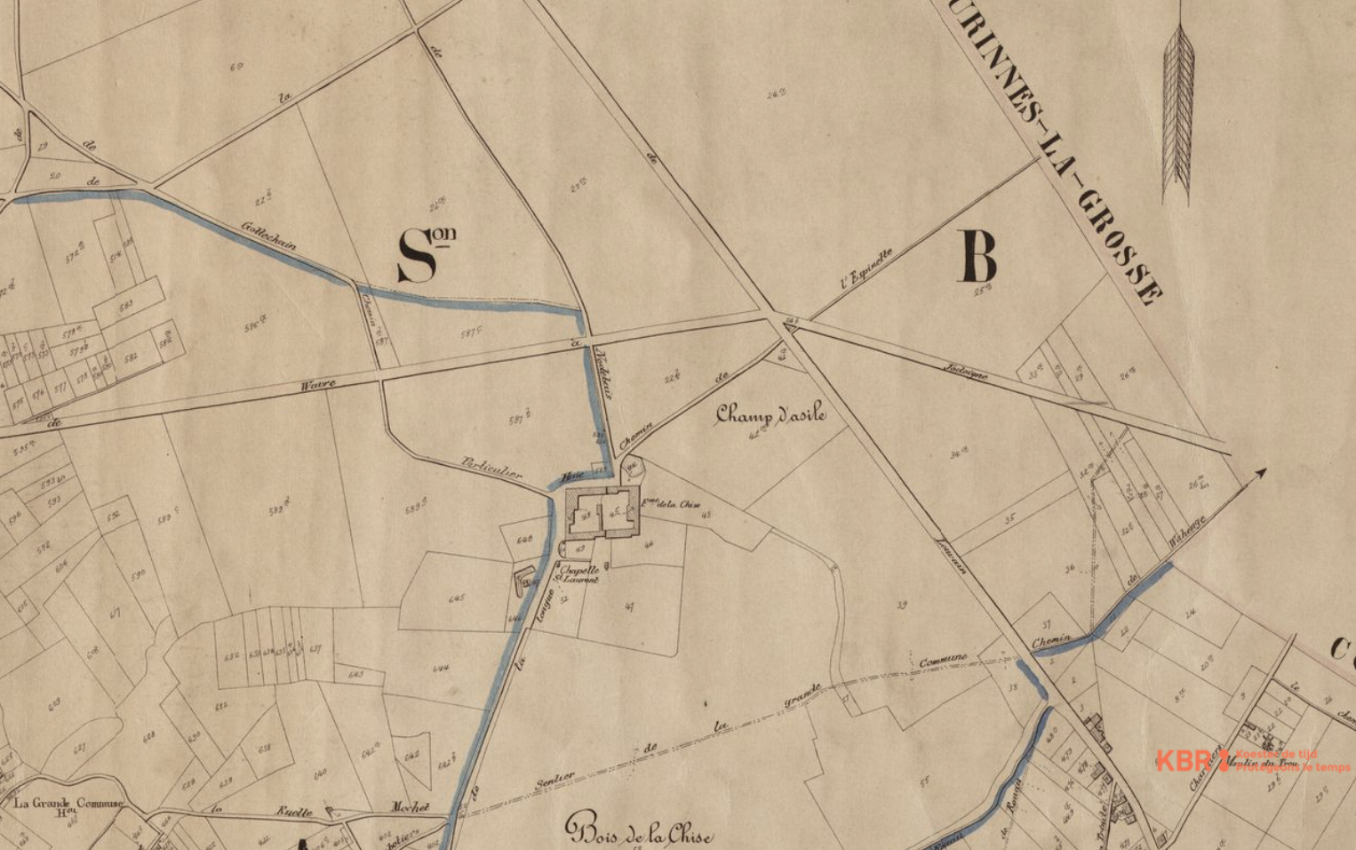 Mais… On ne voit pas où cette ligne devrait aboutir. Il est simplement indiqué : « vers le champ d’asile ». J’ai rapidement effectué quelques recherches, mais je n’ai pas trouvé immédiatement ce dont il s’agit. J’ai donc posé la question à Marie-José Frix, conseillère communale et habitante de La Bruyère (et ma chère voisine au conseil !). Elle se souvenait que ses parents « avaient des terres au champ d’asile », et que ces terres se trouvaient à La Chise, près de la ferme de La Chise. Ce champ se trouve donc à Pietrebais, et j’ai rapidement parcouru mes différentes sources. Dans Tarlier & Wauters, mais aussi sur la carte Popp (tous deux du 19e siècle), nous avons vite retrouvé des informations.