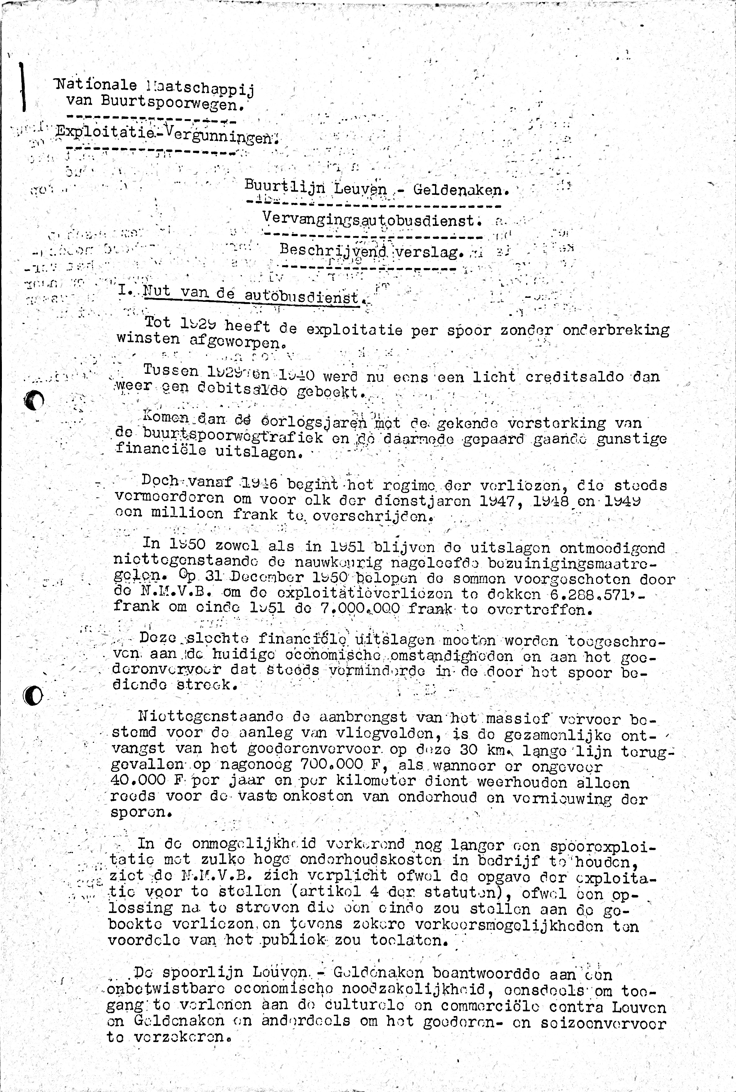 Il était inévitable que, tôt ou tard, nous devions aborder, après les merveilles telles que les talus et les ponts en fer, la question de l’arrêt du tram dans notre région dans les années 50. Bien que l’historique ait été décrit ailleurs, je souhaite ici prendre le temps de parcourir un rapport établi par R. Hoens, directeur général à cette époque. Je regrette, tout comme de nombreux citoyens, l’abandon de ce beau projet industriel de transport de marchandises et de passagers, ce document expose également un autre point de vue. Je profite aussi de cette occasion pour remercier les bénévoles des musées du tram à Anvers, qui ont soigneusement conservé ces archives, et qui méritent une visite.