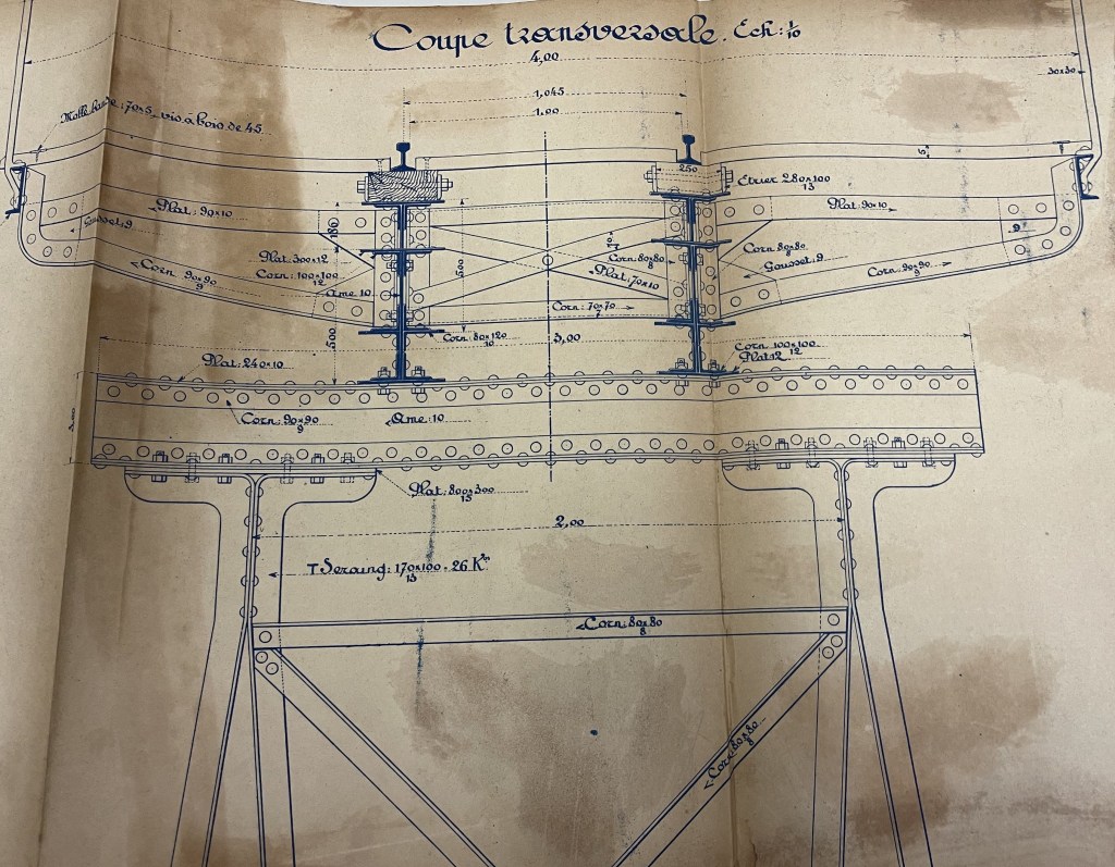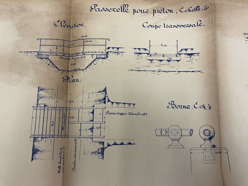 Revenons sur l’attraction phare du tram, les ponts (un grand et un petit), ici au Rue des Claines à Hamme-Mille. Je vous présente plusieurs plans de cette construction, permettant ainsi de s’émerveiller de la technicité et de l’ampleur de cet ouvrage du XIXe siècle. Ces plans offrent une plongée dans le passé, révélant la vision d’antan pour une mobilité fluide des personnes et des marchandises.